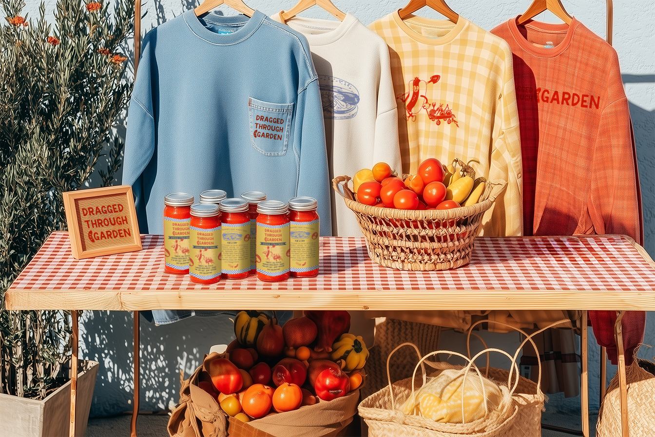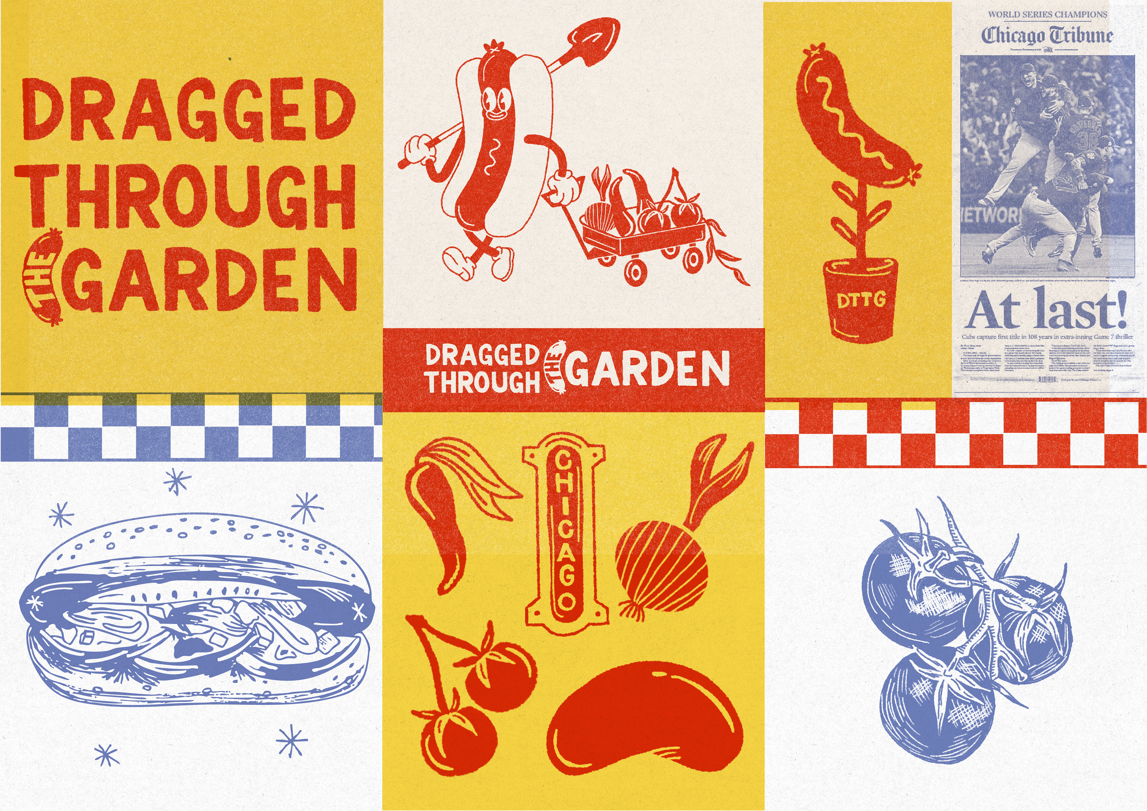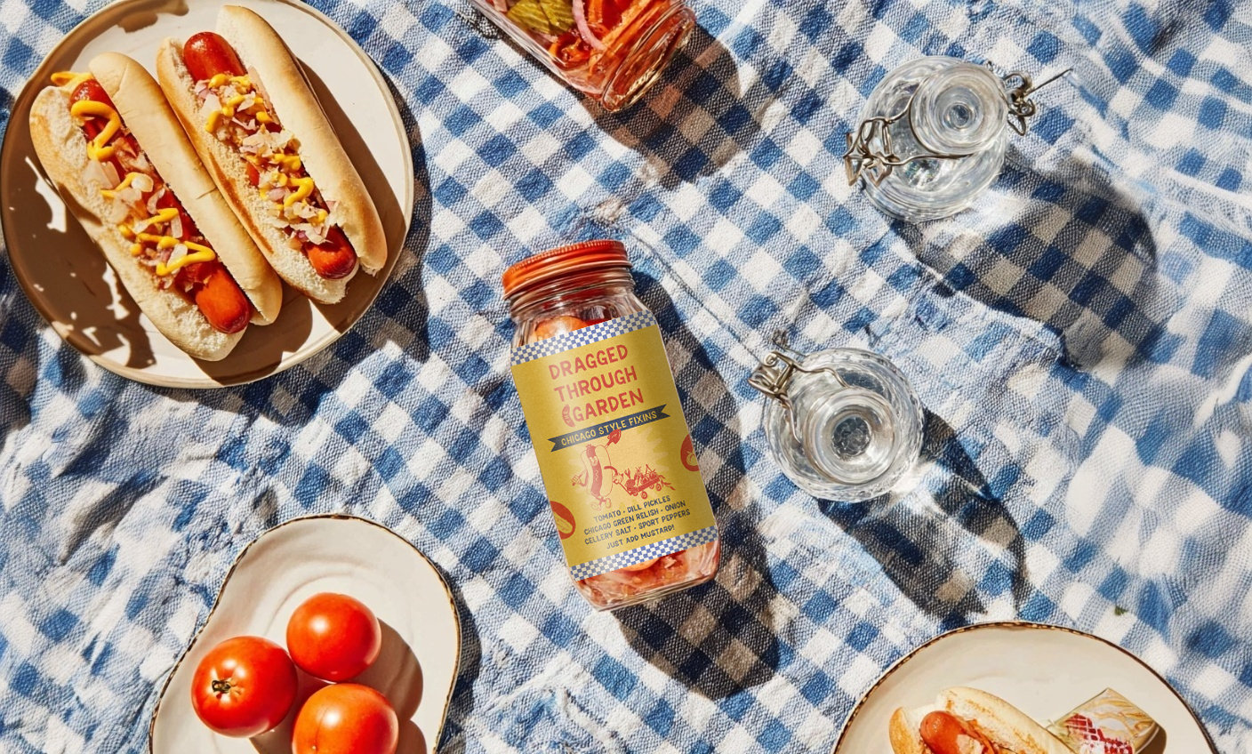 Dragged Through the Garden is a Chicago-inspired condiment that blends all the classic toppings of a Chicago hot dog into one bold, flavorful jar. I created the branding and packaging to reflect the city’s character—illustrative, textured, and full of personality. Every element is hand-drawn, celebrating the vibrant ingredients and Chicago’s distinctive flare. The visual texture draws inspiration from the city’s strong risograph printmaking culture, giving the brand an authentic, artistic, and handcrafted feel that mirrors the product’s small-batch, locally rooted spirit.