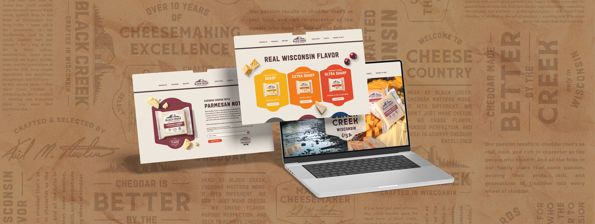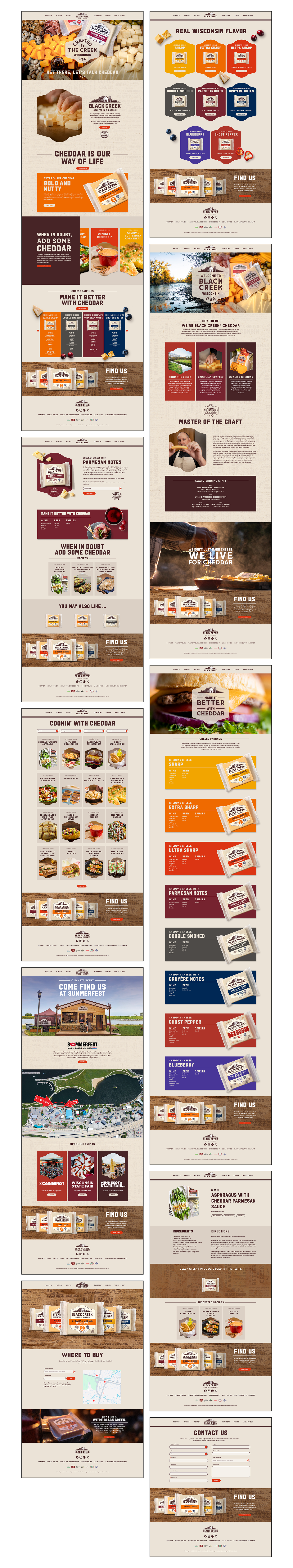 I worked with Black Creek Cheddar on a full website redesign at my agency, bringing their updated brand guidelines to life across a responsive digital experience. I designed and prototyped both desktop and mobile versions in Figma, learning and applying web design best practices to create a site that feels modern, cohesive, and true to the brand.