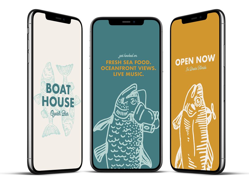 For the Boat House Oyster Bar, I aimed to blend a classic nautical aesthetic with the quirky charm that makes the restaurant a family favorite in Destin, Florida. Featuring hand-illustrated fish sporting funky hats, the brand exudes a playful coastal feel. The deliverables include a branding guide, merchandise, menus, and social media posts. Honored with a Hermes Gold Award from the American Advertising Federation Dayton Chapter, as well as a Silver Addy award from the AAF at the regional level and a Silver from The University and College Designers Association, this project captures the the restaurant's and charming unique atmosphere.